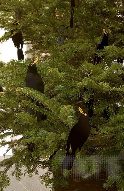 Le choix du merle n’est pas anodin. En effet, c’est l’un des rares oiseaux à ne pas migrer en hiver : il est omniprésent au Royaume-Uni tout au long de la saison froide. Les merles font également partie intégrante de la culture populaire britannique en cette période de l’Avent. Dans le célèbre chant de Noël The Twelve Days of Christmas (écoutez-le ci-dessous si vous ne le connaissez pas 😉) le passage « four calling birds » (« quatre oiseaux appelant ») dériverait de « four coaly birds », soit quatre oiseaux noirs comme le charbon, « coal » en anglais.